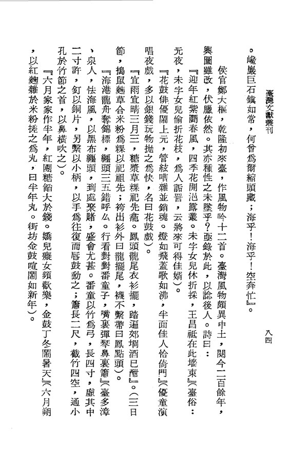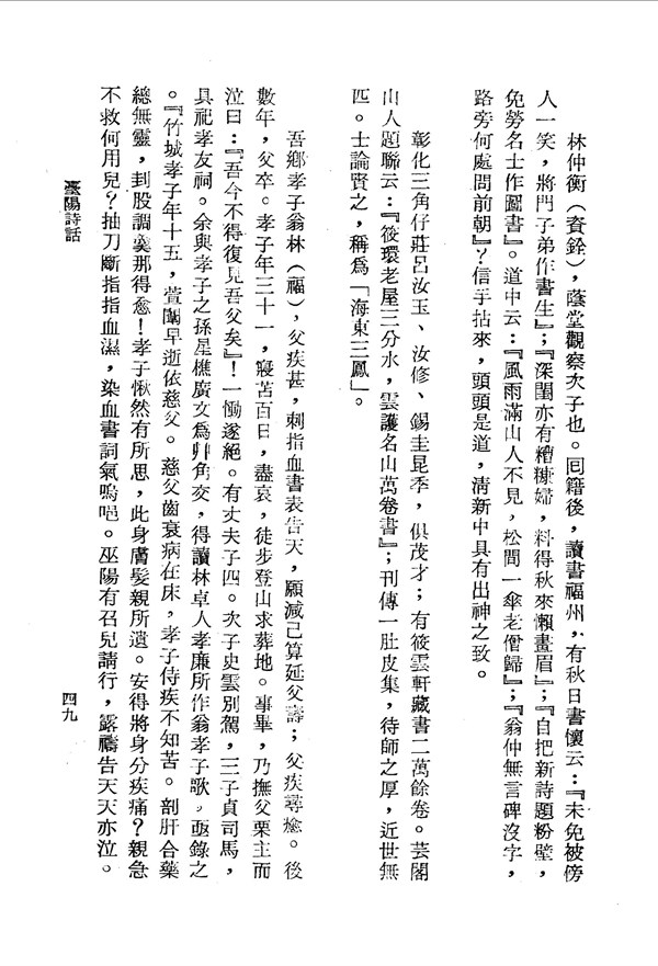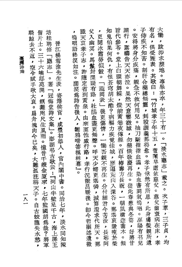 竹城孝子侍慈父 臺陽詩話卷上 台灣文獻史料叢刊 -