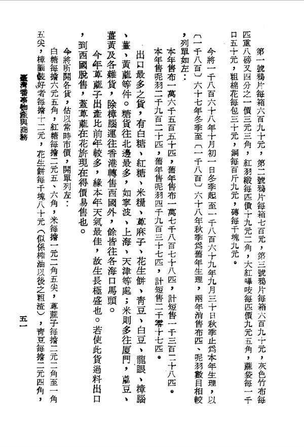 到臺各貨物之金額 臺灣番事物產與商務 台灣文獻史料叢刊 -