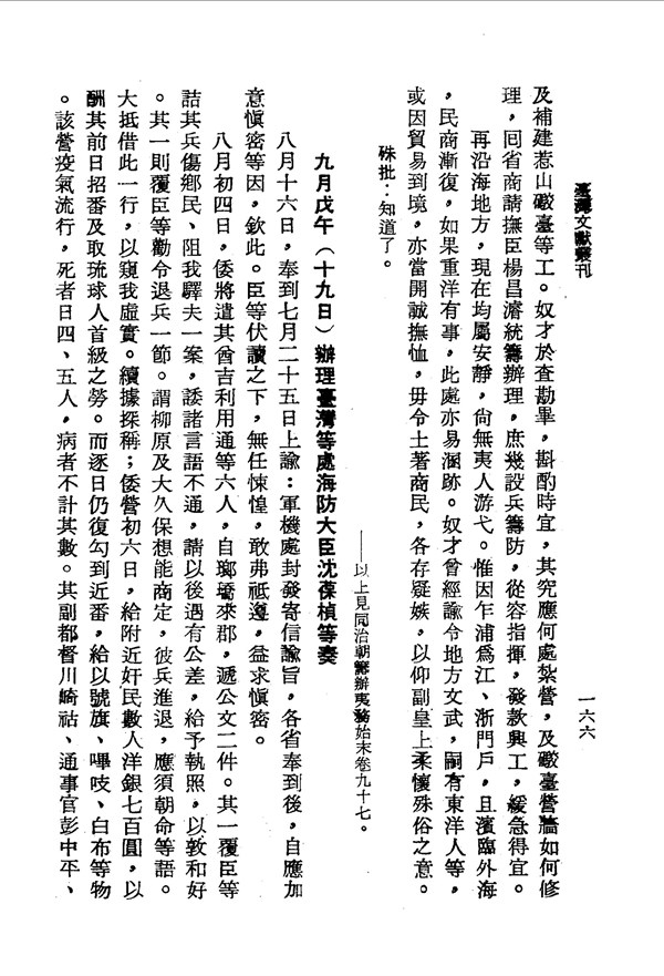 該營疫氣流行外人多病 同治甲戌日兵侵臺始末卷三 台灣文獻史料叢刊 -