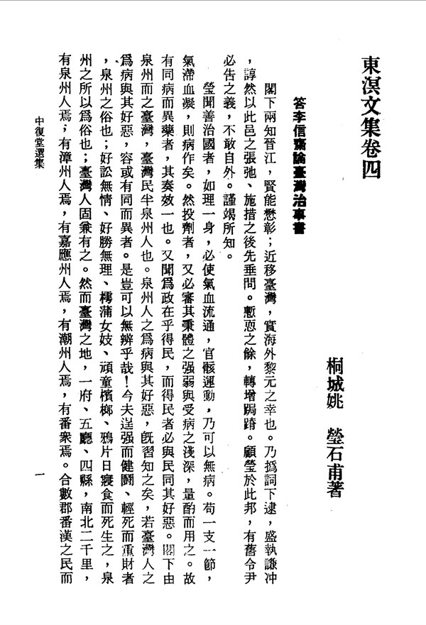 擅長治國者就如同打理身體,要使氣血流通、四肢運動,便可以不生病 中復堂選集目錄東溟文集卷四 台灣文獻史料叢刊 -