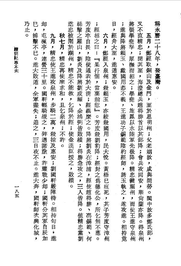 黃梧因疽而死 續明紀事本末卷之七 台灣文獻史料叢刊 -