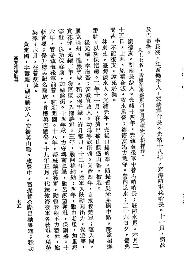 後元福帶鎮海後軍駐新開園、勦恆春番社,後積勞染瘴病故 臺東州采訪冊 台灣文獻史料叢刊 -