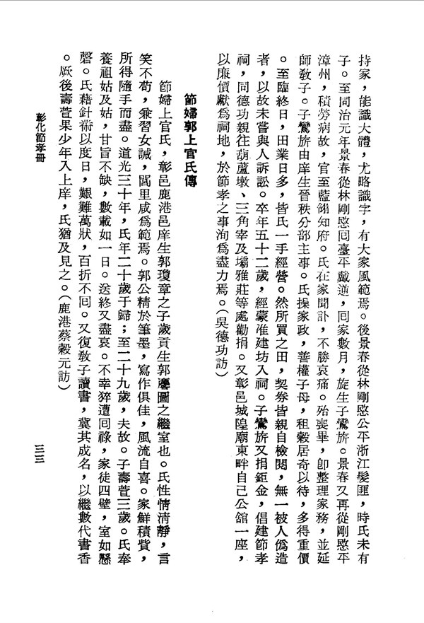 吳林氏,夫吳景春積勞病故,後整理家務並延師教子 彰化節孝冊 台灣文獻史料叢刊 -