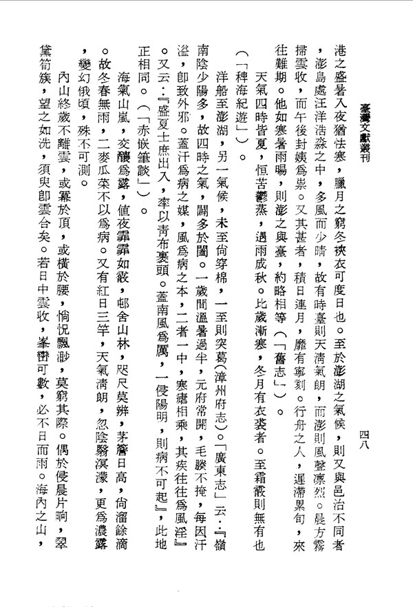 澎湖氣候多變,容易生病 續修臺灣縣志卷一 台灣文獻史料叢刊 -
