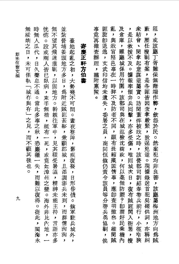 徐宗幹親自到軍中,見受暑濕積病,臥病在床,束手無策 斯未信齋文編卷一 台灣文獻史料叢刊 -