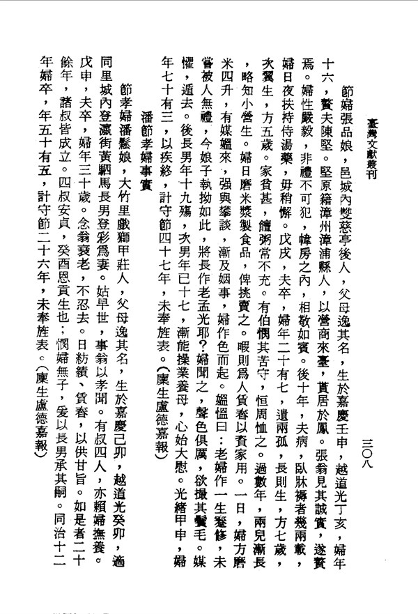 張品娘夫病臥床,日夜扶持侍湯藥 鳳山縣采訪冊辛部 台灣文獻史料叢刊 -