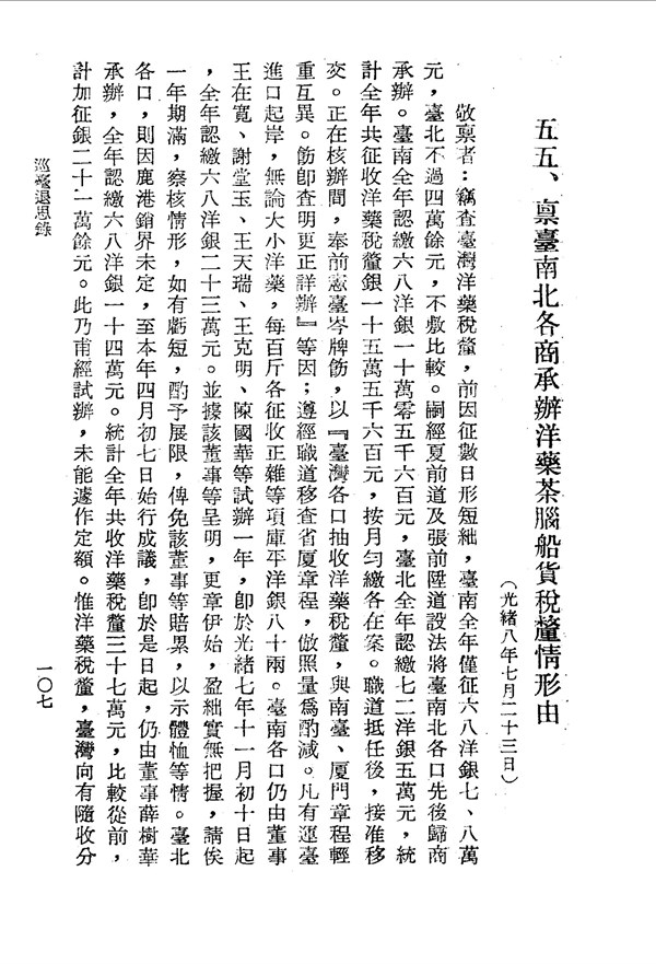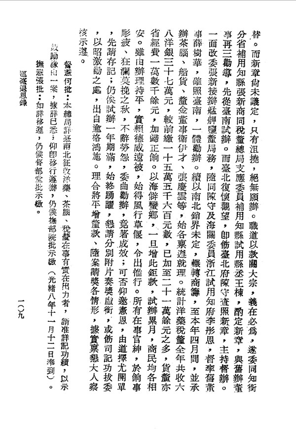 臺南北洋藥稅釐沒有起色,改歸商董辦理 巡臺退思錄卷二 台灣文獻史料叢刊 -