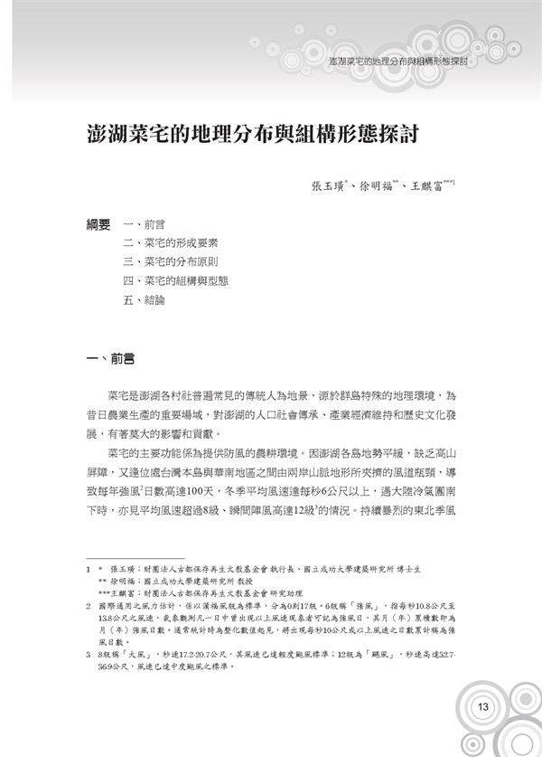 《澎湖研究學術研討會論文輯》第九屆〈澎湖菜宅的地理分布與組織形態探討〉 -