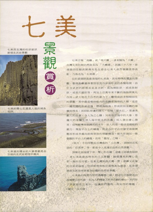 《硓古石》季刊第5期〈七美景觀賞析—七美西北灣的柱狀板狀節理玄武岩景觀 -