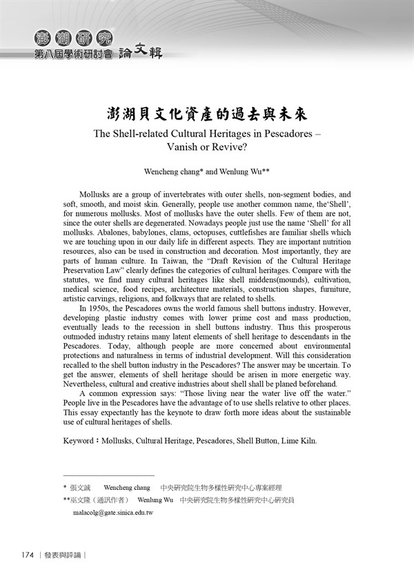 《澎湖研究學術研討會論文輯》第八屆〈澎湖貝文化資產的過去與未來〉 -