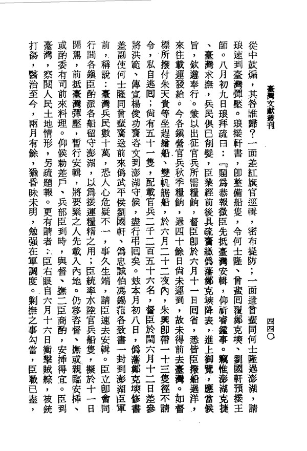 施琅右眼被銃打傷未癒,懇准回汛調治 重修臺灣府志卷十 台灣文獻史料叢刊 -