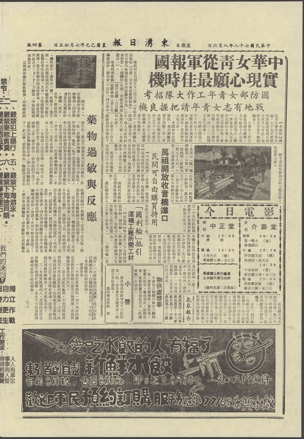 中華民國78年8月6日東湧日報第一一四四八期第四版 -