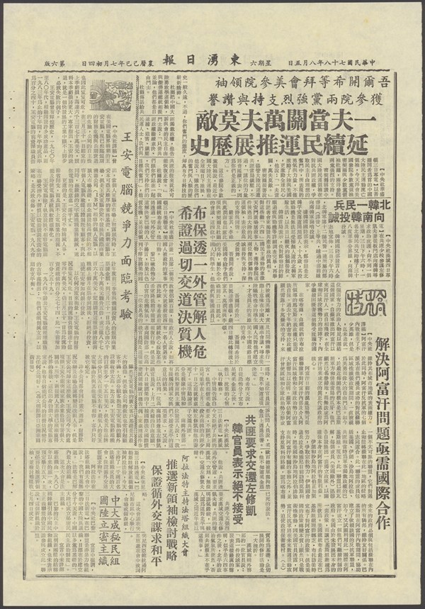 中華民國78年8月6日東湧日報第一一四四八期第一版 -