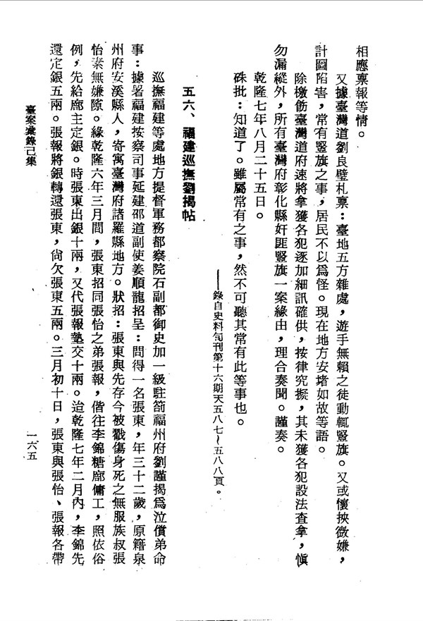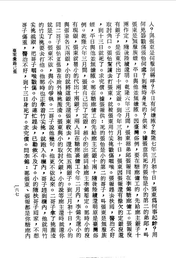 訊問張東張怡受傷死亡的案件 臺案彙錄己集卷四 台灣文獻史料叢刊 -