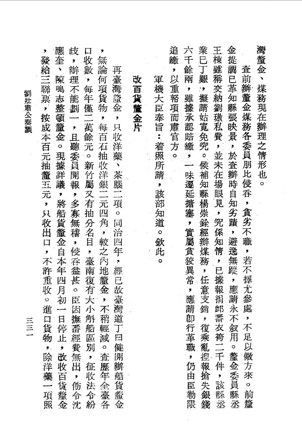 進口貨物除洋藥皆不抽釐 劉壯肅公奏議卷七 台灣文獻史料叢刊 -