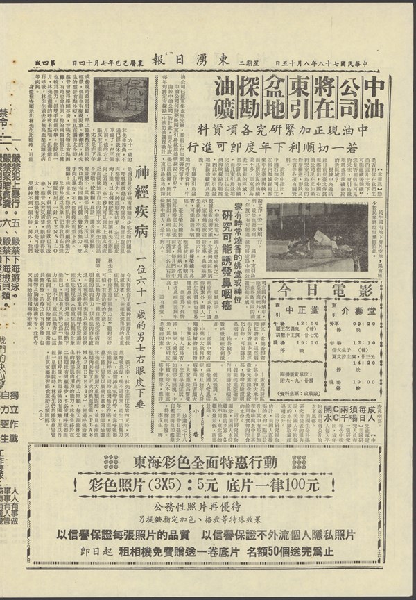 中華民國78年8月14日東湧日報第一一四五六期第四版 -