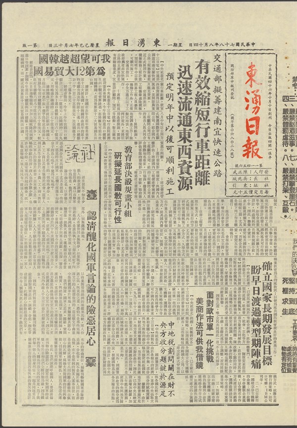 中華民國78年8月14日東湧日報第一一四五六期第一版 -