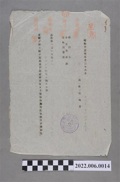 基隆稅關昭和13年五月中自動艇執務狀況報告書 -