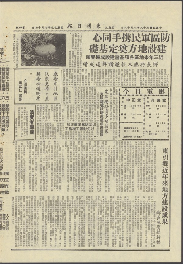 中華民國78年8月19日東湧日報第一一四六一期第四版