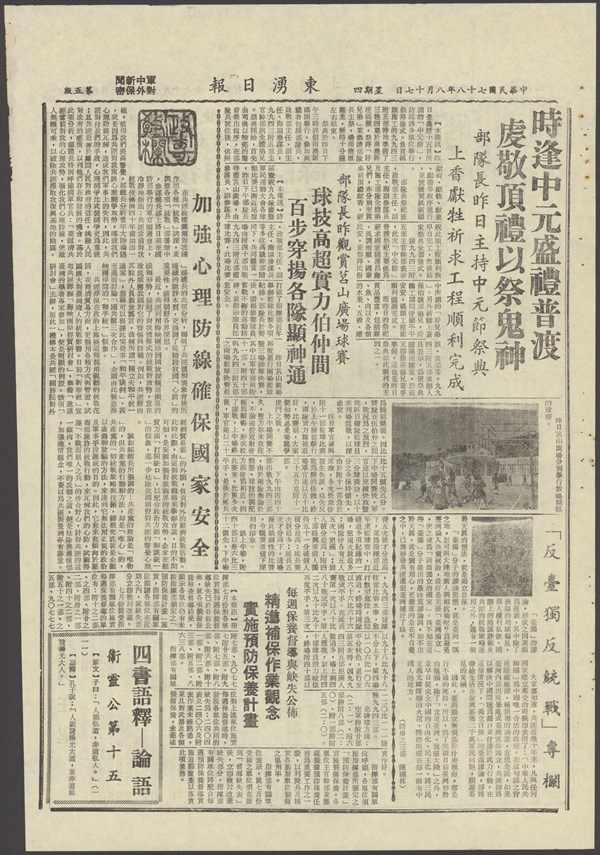 中華民國78年8月17日東湧日報第一一四五九期第五版 -