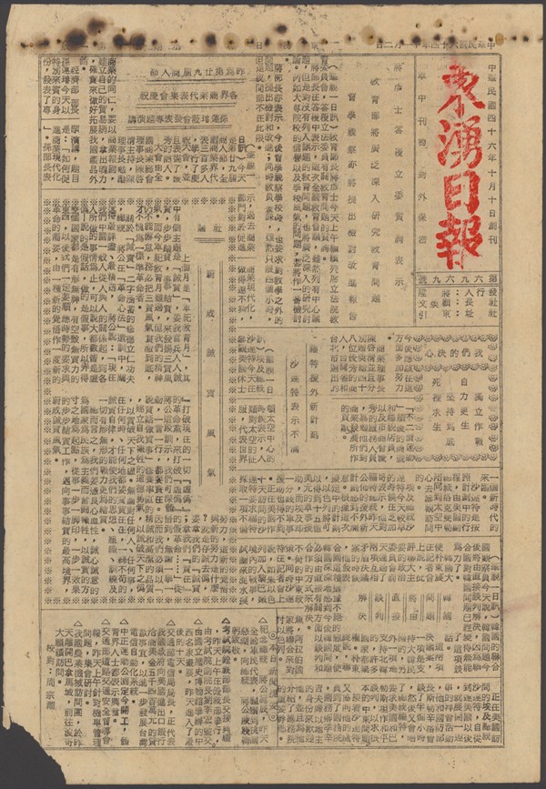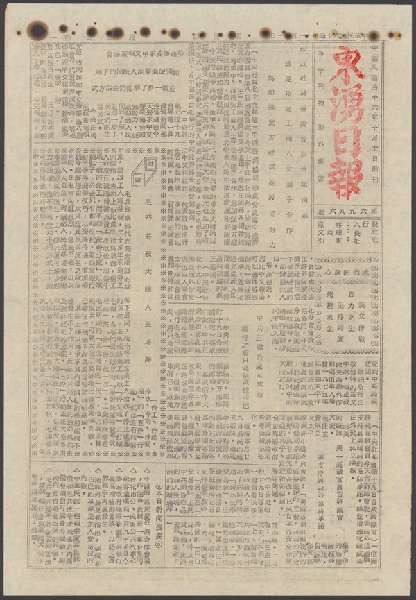 中華民國64年11月2日東湧日報第六九六九期第一版 -