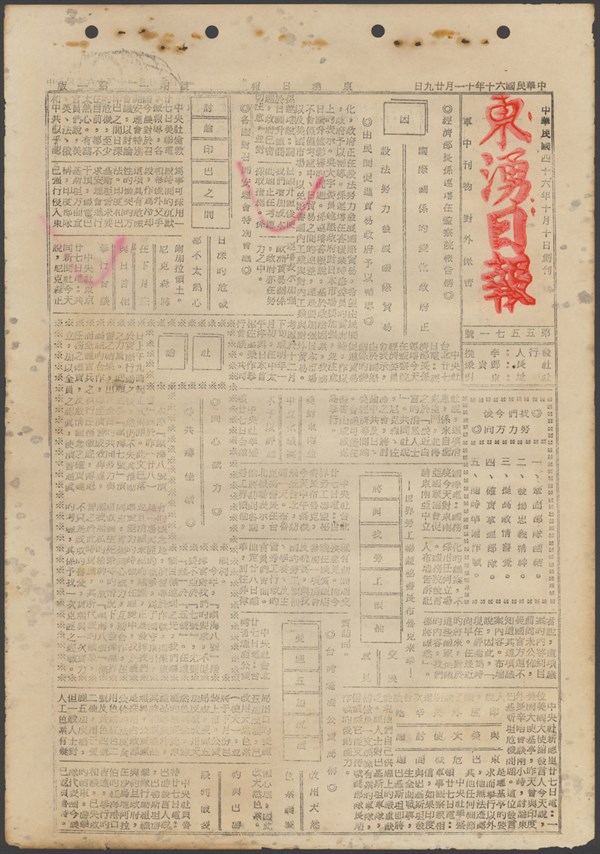 中華民國60年11月29日東湧日報第五五七一期第一版 -
