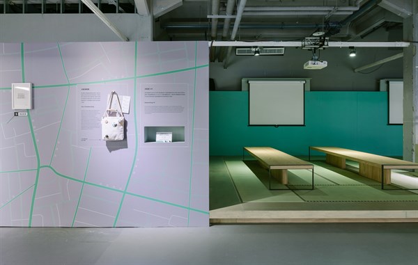 2019年4月24日至5月5日臺灣文博會工藝館,茶3.1415展場左側大稻埕茶地圖牆面與右側「論」區榻榻米區域 2019年4月24日至5月5日臺灣文博會工藝館,茶3.1415展場左側大稻埕茶地圖牆面與右側「論」區榻榻米區域