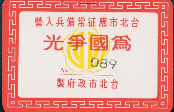 台北市應徵常備兵入營「為國爭光」識別證 台北市應徵常備兵入營「為國爭光」識別證